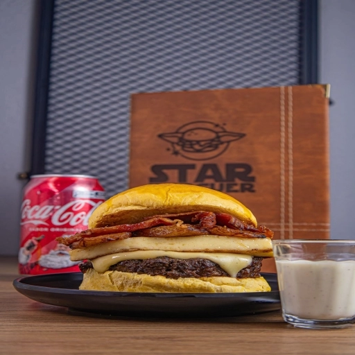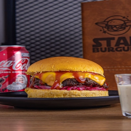 Pão de brioche, burger 150g, queijo cheddar, molho especial.