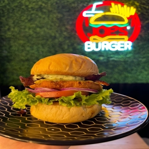 Pão de Brioche, queijo prato, bacon, bife de frango com empanamento especial, alface, tomate, cebola roxa e maionese ve... Ver completo