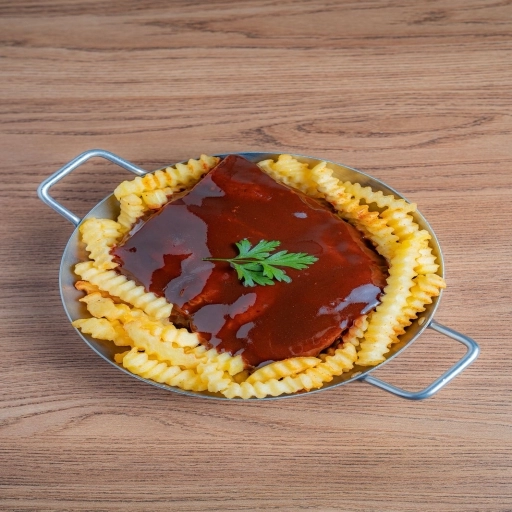 Costela Suína Defumada com molho barbecue. Acompanha batata frita.
