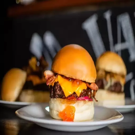 Burger de 150g, pão de brioche, queijo cheddar, cebola picles, bacon crocante e geleia de pimenta